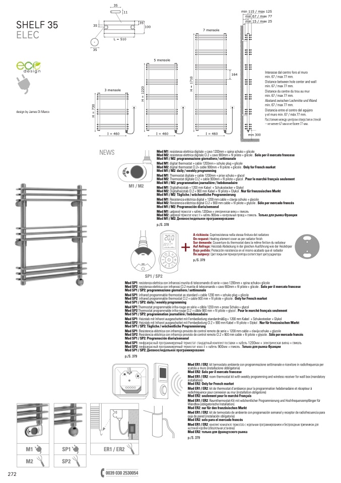 Mod SP1: infrared programmable thermostat as standard + cable 1200 mm + schuko plug + glicole
