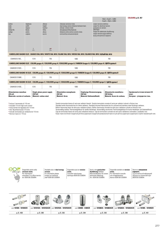 CARDELLINO BAGNO ELEC . COLORI gruppo A / COLOURS group A / COULEURS groupe A / FARBEN Gruppe A / COLORES grupo A / ЦВЕТА группа A