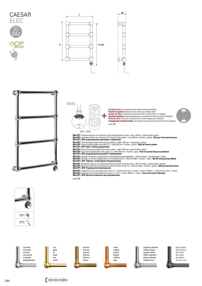 Mod SP1: infrared programmable thermostat as standard + cable 1200 mm + schuko plug + glicole