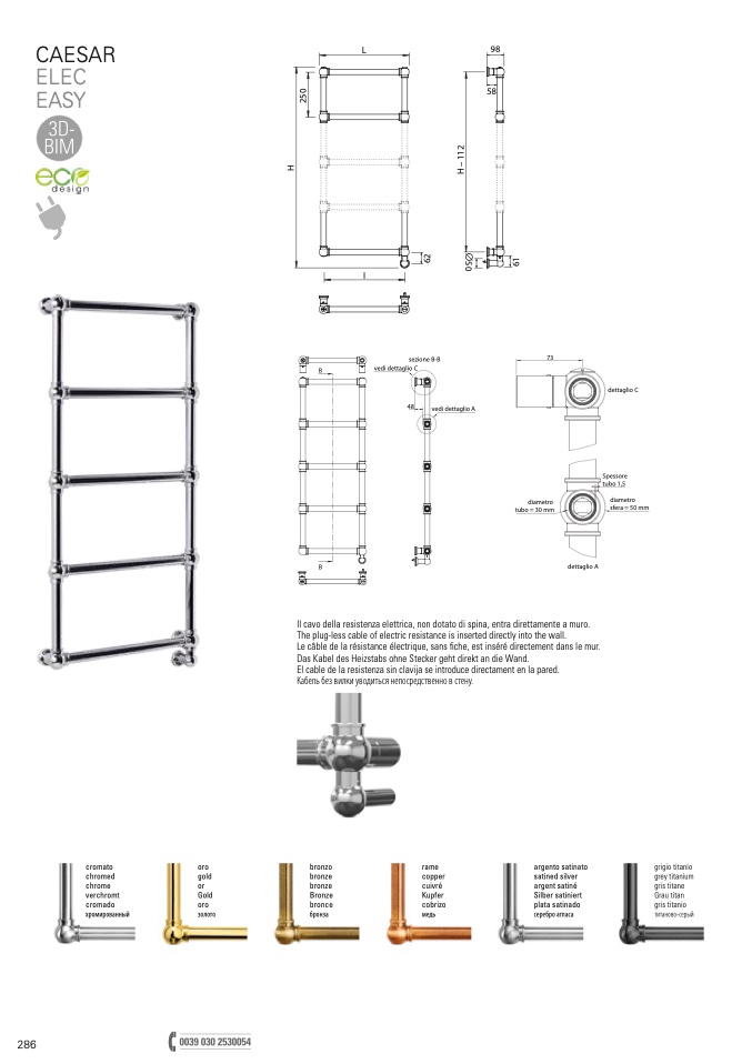 Il cavo della resistenza elettrica, non dotato di spina, entra direttamente a muro.
