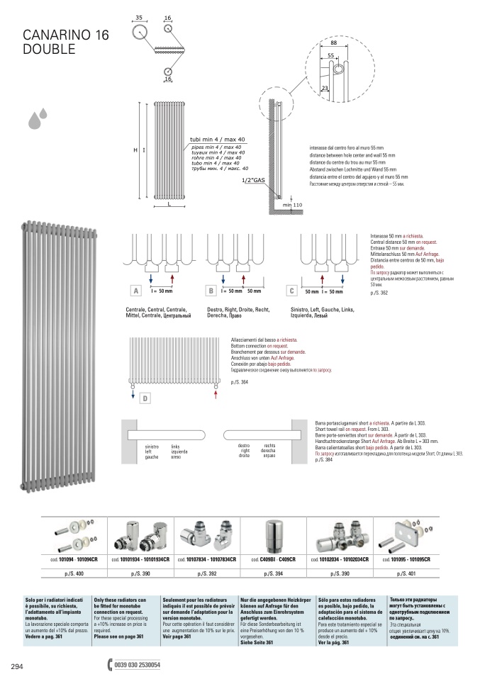 Barra calientatoallas short bajo pedido. A partir de L 303.
