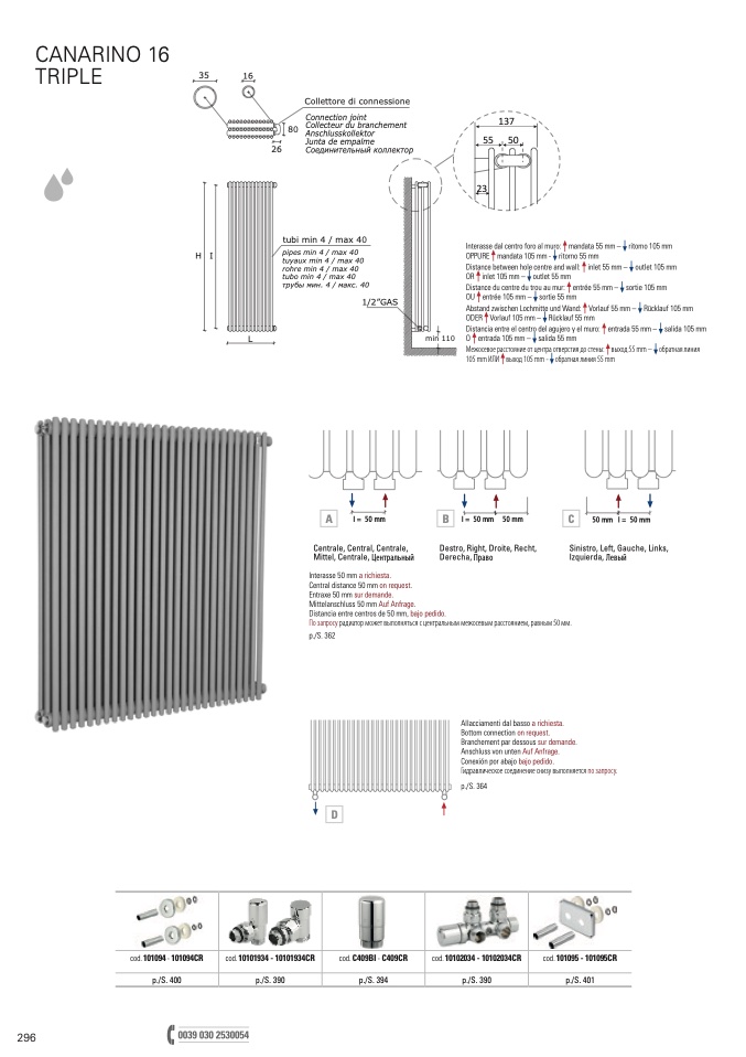 По запросу радиатор может выполняться с центральным межосевым расстоянием, равным 50 мм.