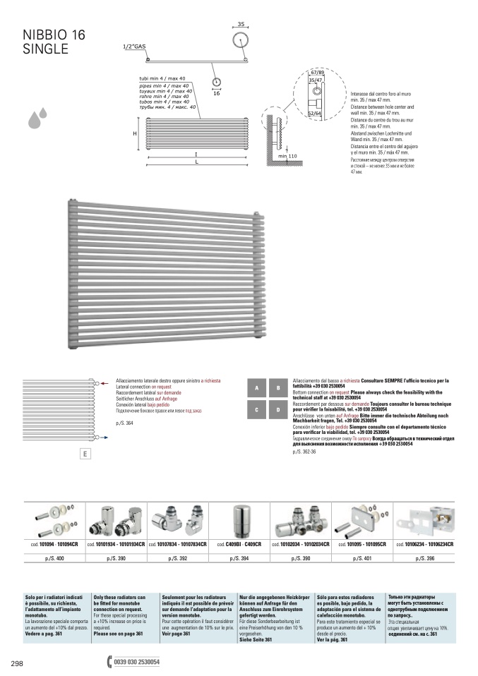 Bottom connection on request Please always check the feasibility with the