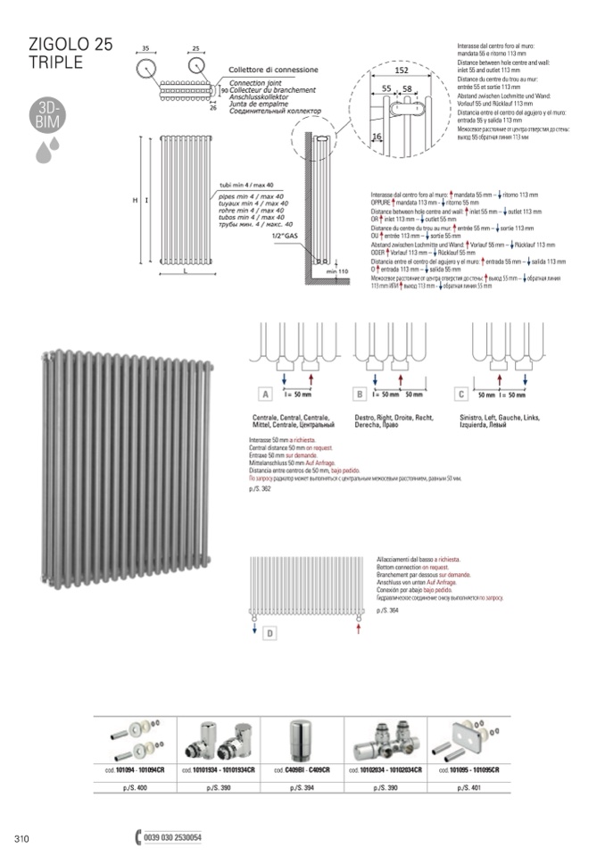 По запросу радиатор может выполняться с центральным межосевым расстоянием, равным 50 мм.