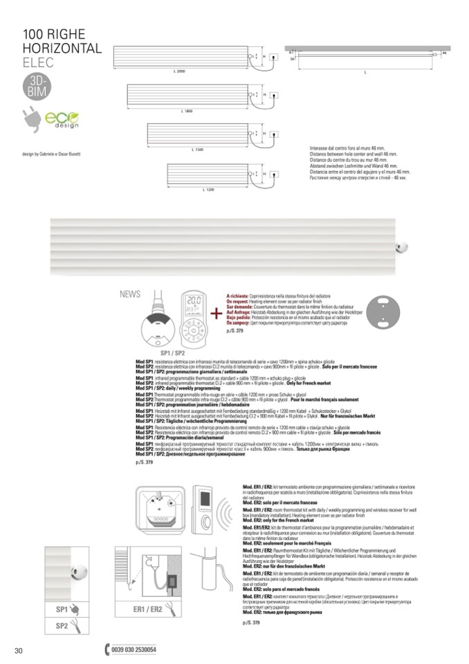 Mod SP2: resistenza elettrica con infrarossi Cl.2 munita di telecomando + cavo 900mm + fil pilote + glicole . Solo per il mercato francese
