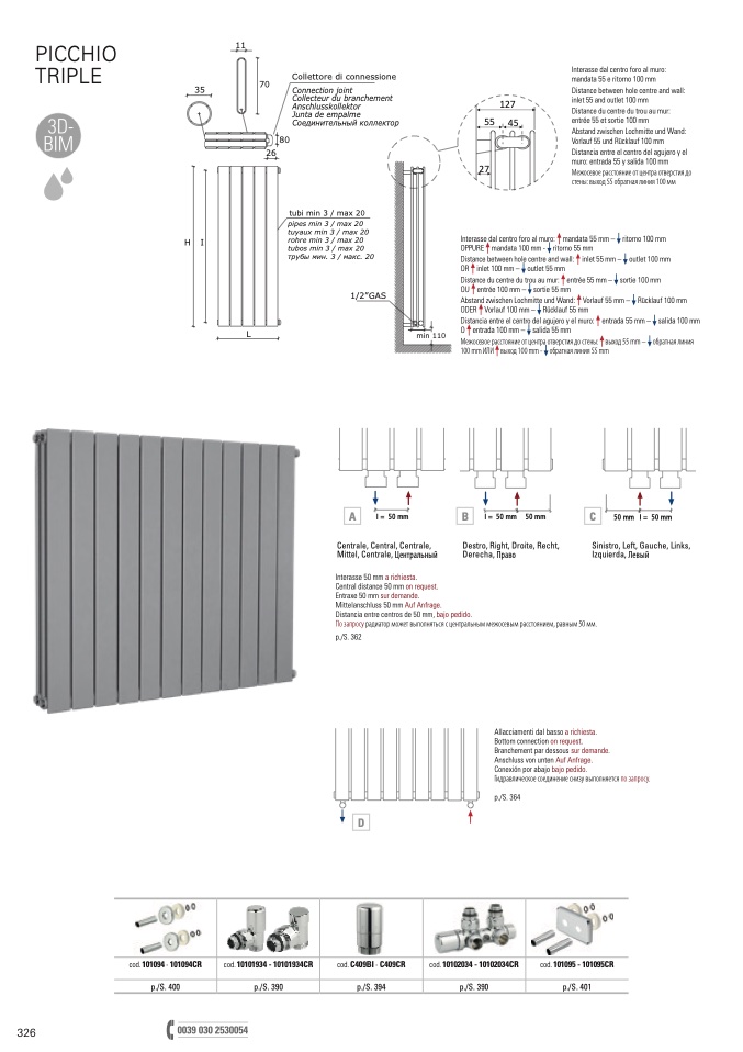 По запросу радиатор может выполняться с центральным межосевым расстоянием, равным 50 мм.