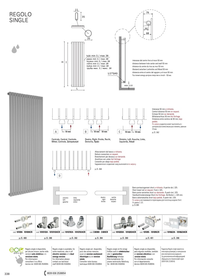 Barra calientatoallas short bajo pedido. A partir de L 325.