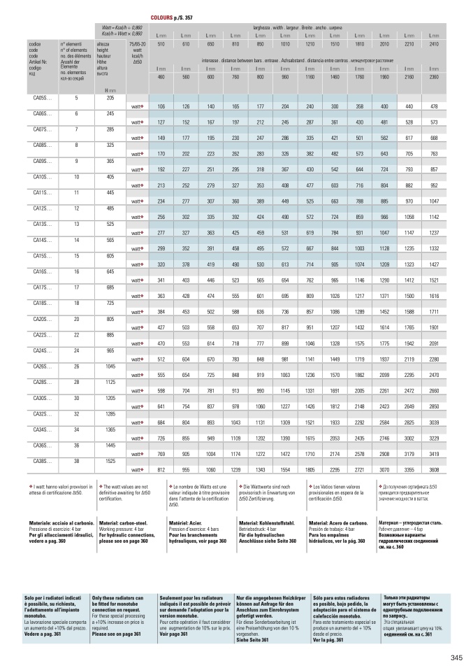 The watt values are not