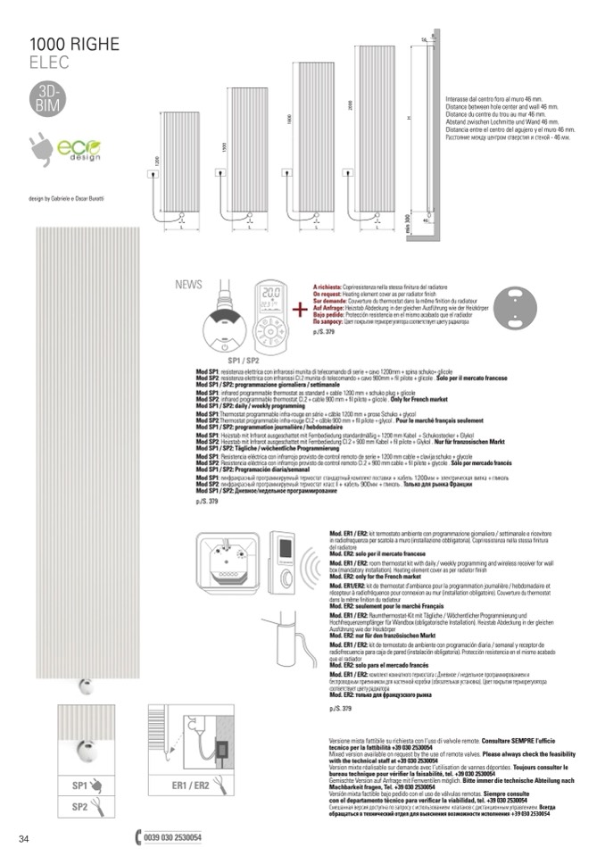 Mod SP2: resistenza elettrica con infrarossi Cl.2 munita di telecomando + cavo 900mm + fil pilote + glicole . Solo per il mercato francese