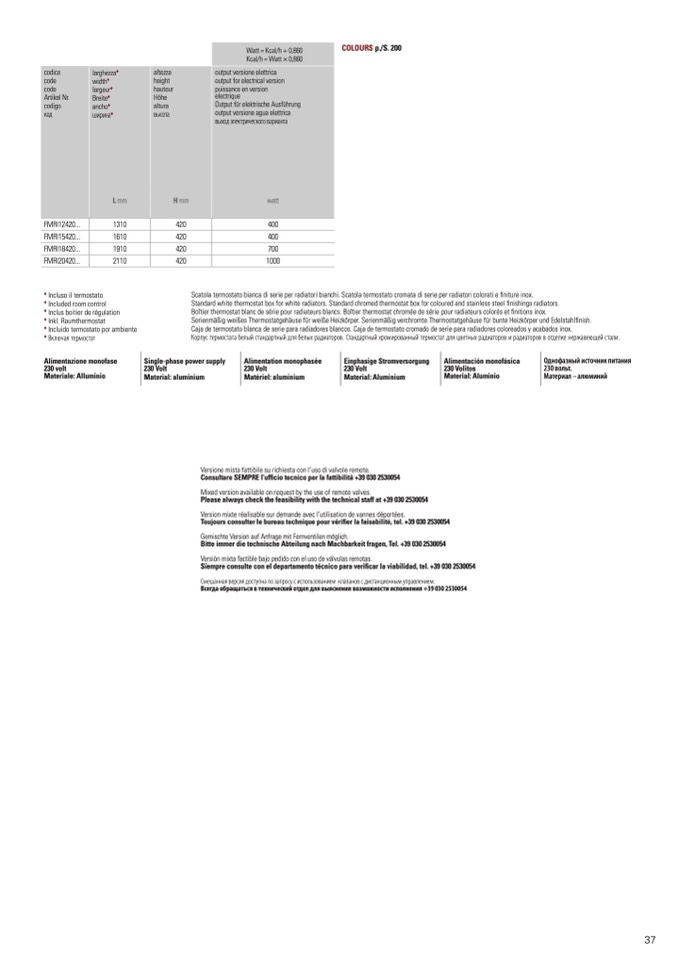 Bitte immer die technische Abteilung nach Machbarkeit fragen, Tel. +39 030 2530054