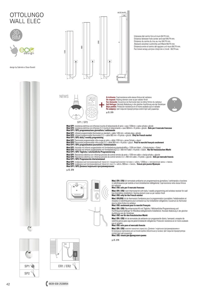 Mod SP2: resistenza elettrica con infrarossi Cl.2 munita di telecomando + cavo 900mm + fil pilote + glicole . Solo per il mercato francese