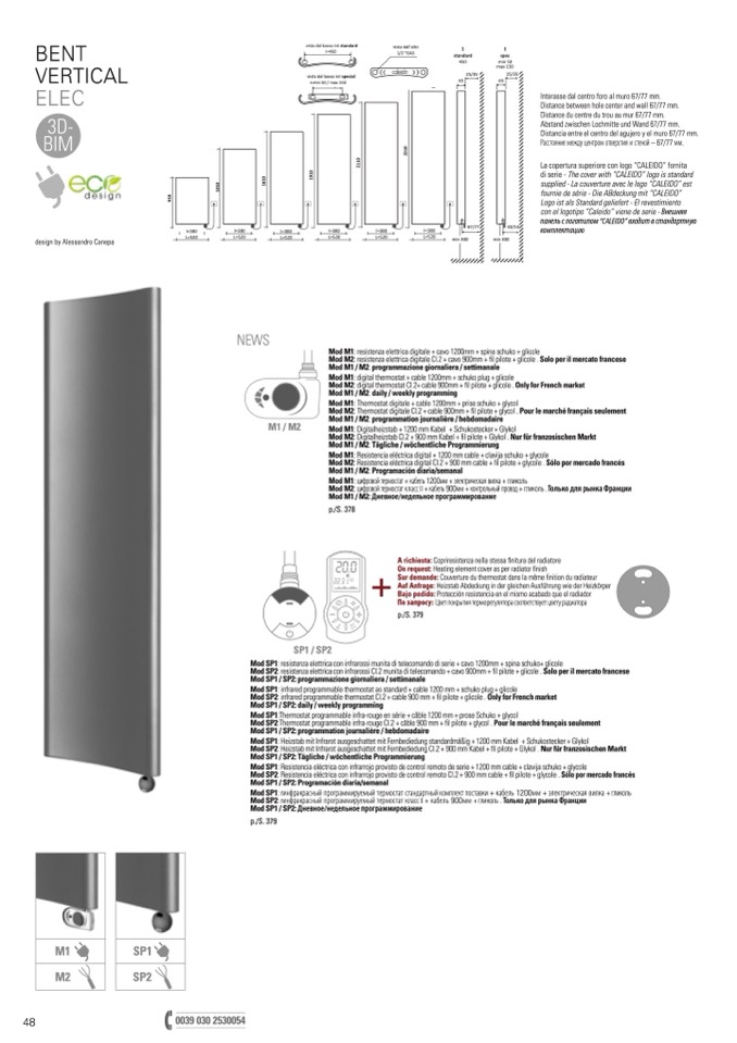 Mod SP1: infrared programmable thermostat as standard + cable 1200 mm + schuko plug + glicole