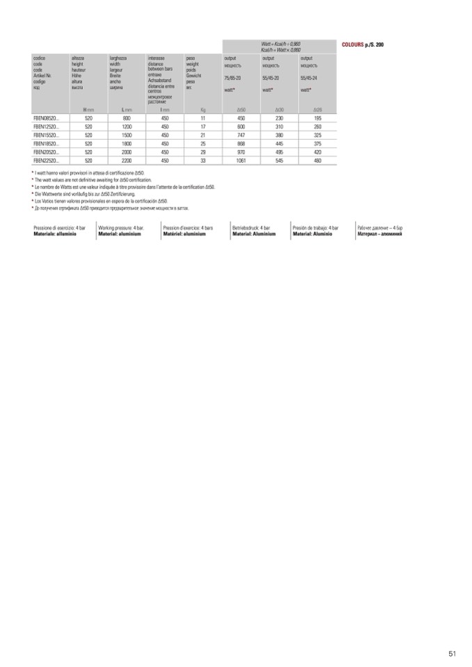 The watt values are not definitive awaiting for Δt50 certification.