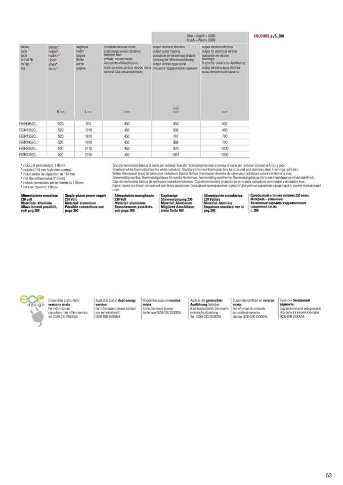 COLOURS p./S. 200
