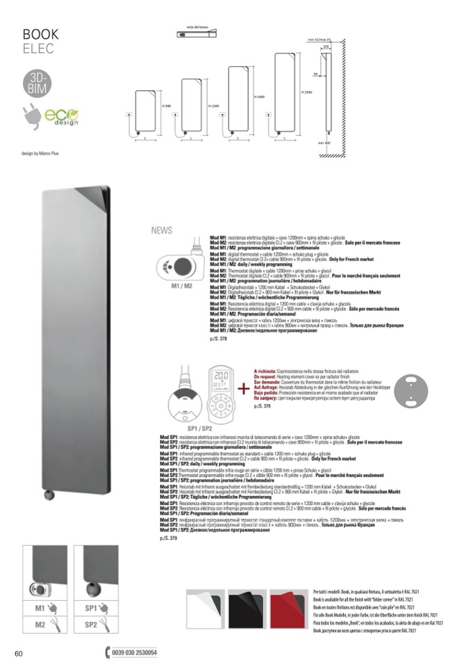 Mod SP1: infrared programmable thermostat as standard + cable 1200 mm + schuko plug + glicole