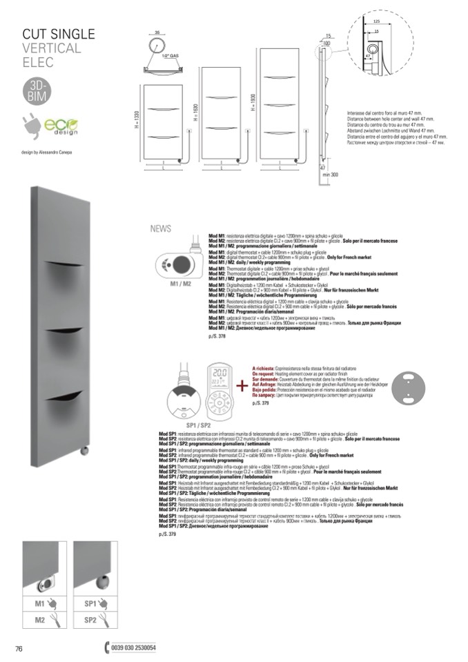 Mod SP1: infrared programmable thermostat as standard + cable 1200 mm + schuko plug + glicole