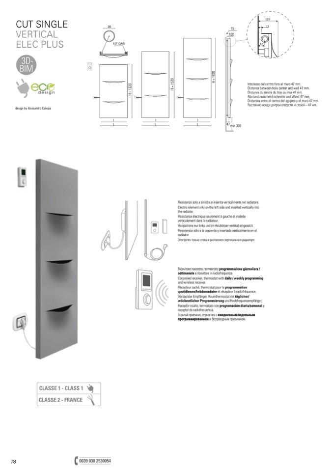 Resistenza solo a sinistra e inserita verticalmente nel radiatore.