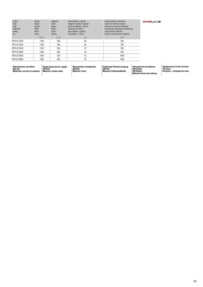 COLOURS p./S. 200