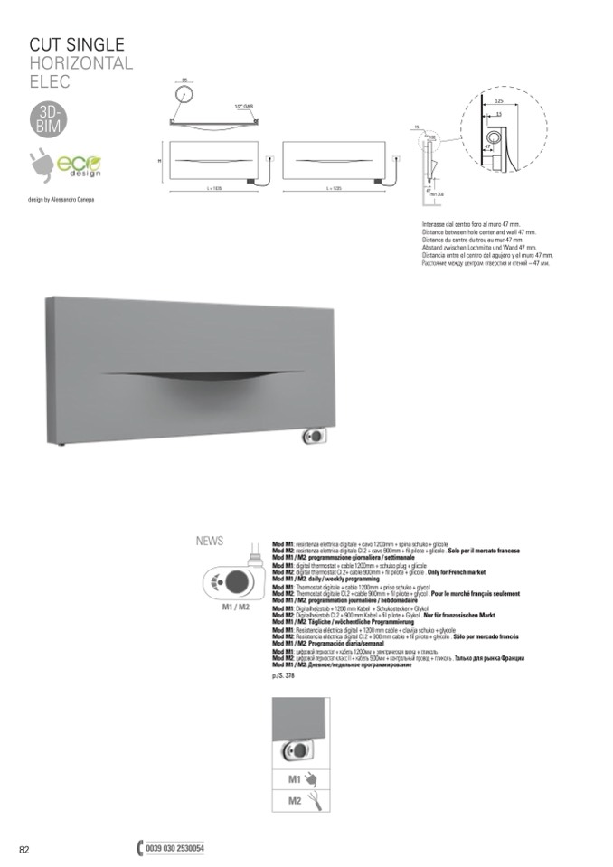 Mod M2: digital thermostat Cl.2+ cable 900mm + fil pilote + glicole . Only for French market
