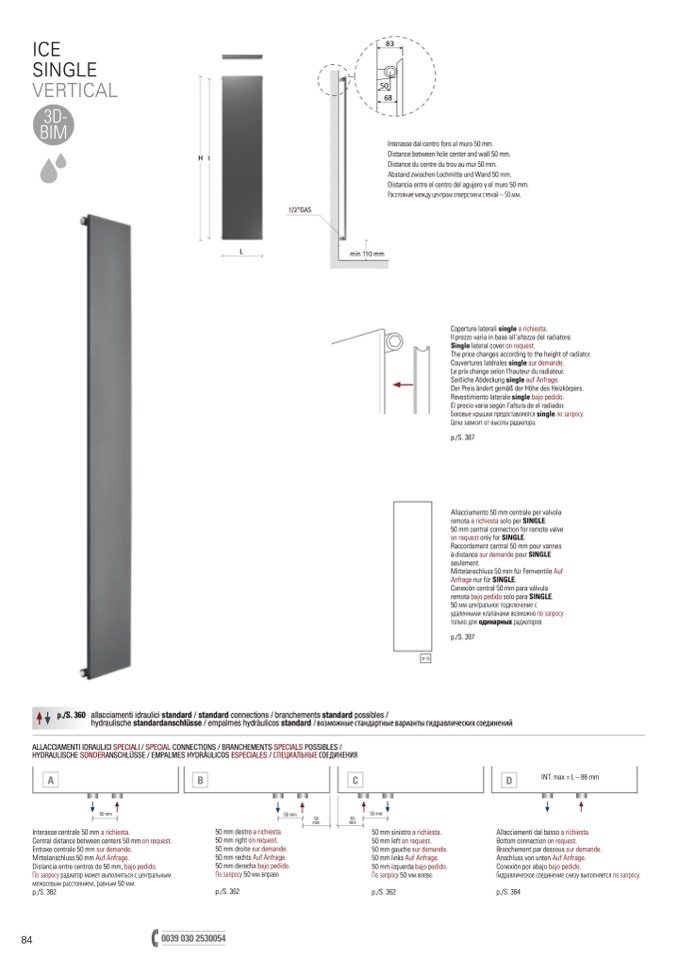 Interasse centrale 50 mm a richiesta.