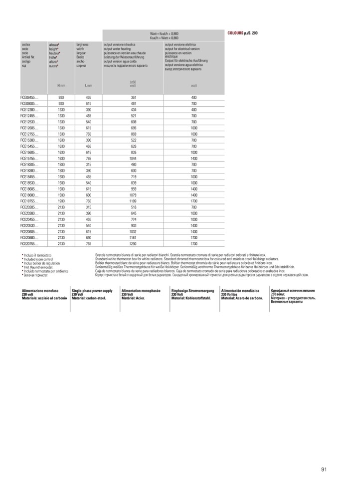 COLOURS p./S. 200
