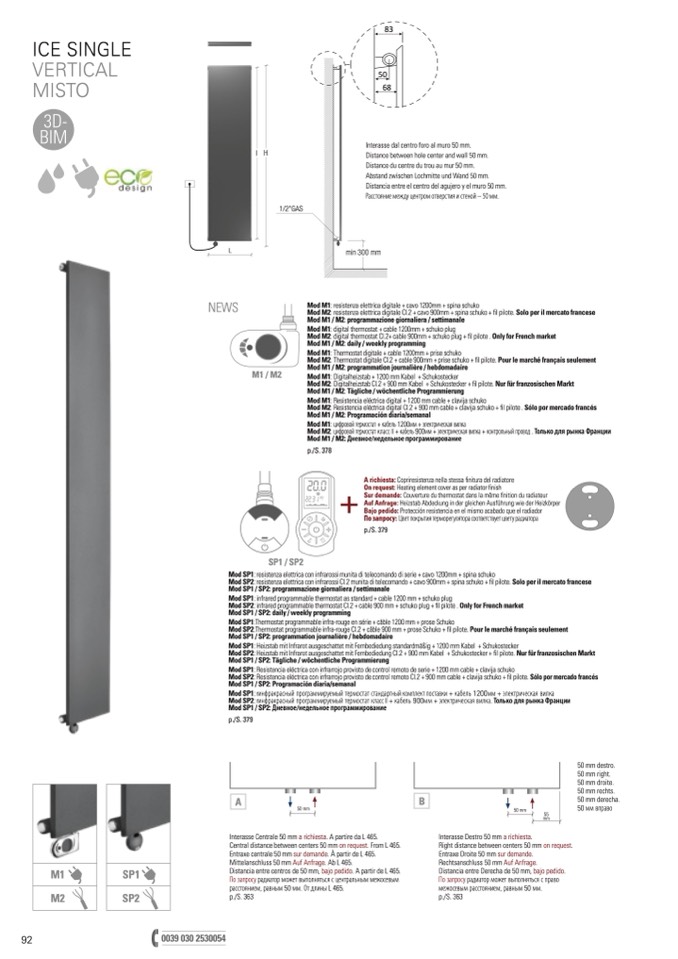 Mod SP1: infrared programmable thermostat as standard + cable 1200 mm + schuko plug