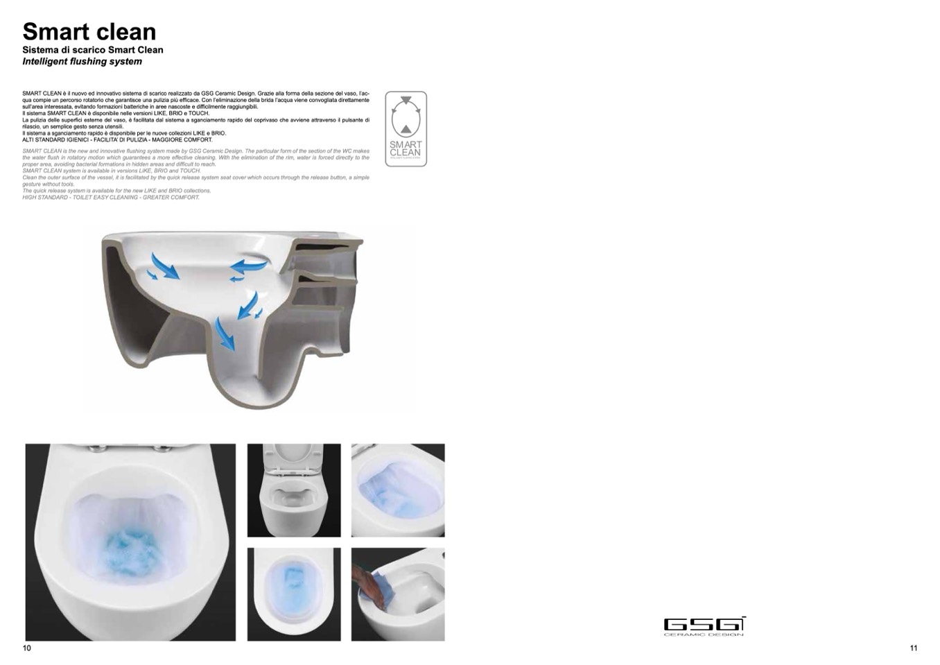 SMART CLEAN is the new and innovative flushing system made by GSG Ceramic Design. The particular form of the section of the WC makes