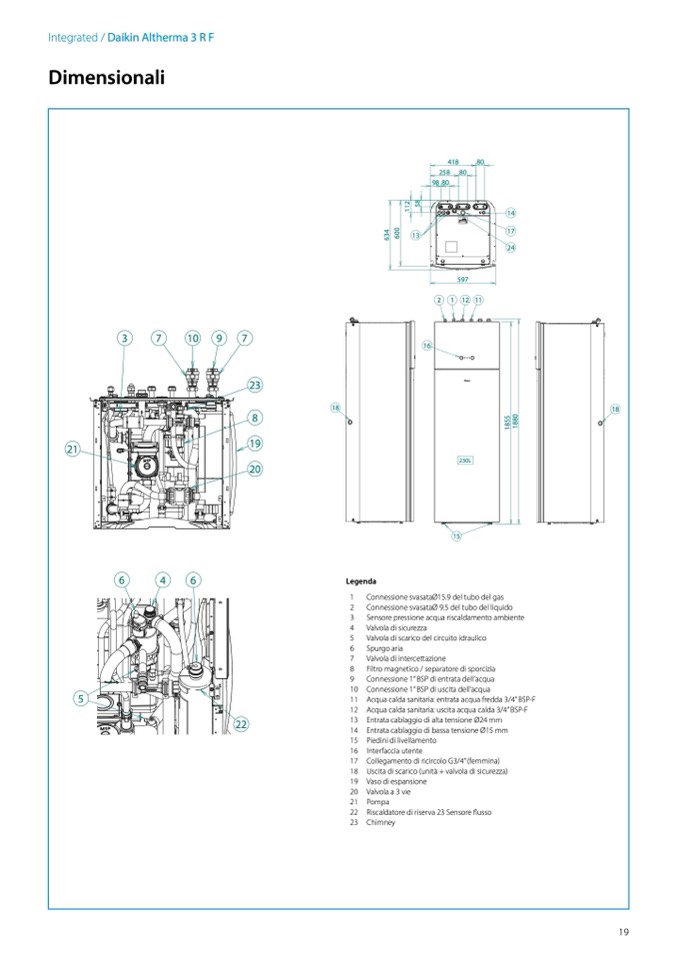18 Uscita di scarico (unità + valvola di sicurezza)