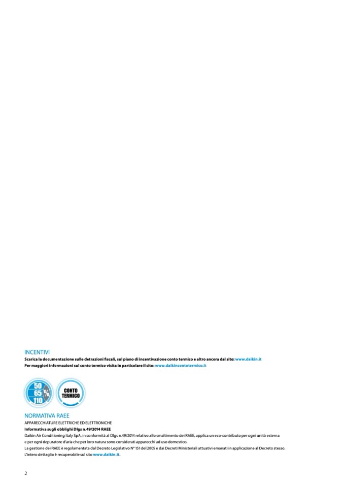 Daikin Air Conditioning Italy SpA, in conformità al Dlgs n.49/2014 relativo allo smaltimento dei RAEE, applica un eco-contributo per ogni unità esterna