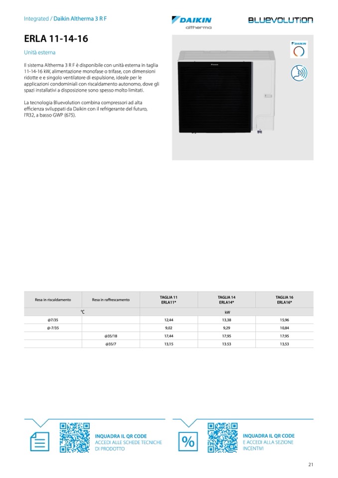 Il sistema Altherma 3 R F è disponibile con unità esterna in taglia