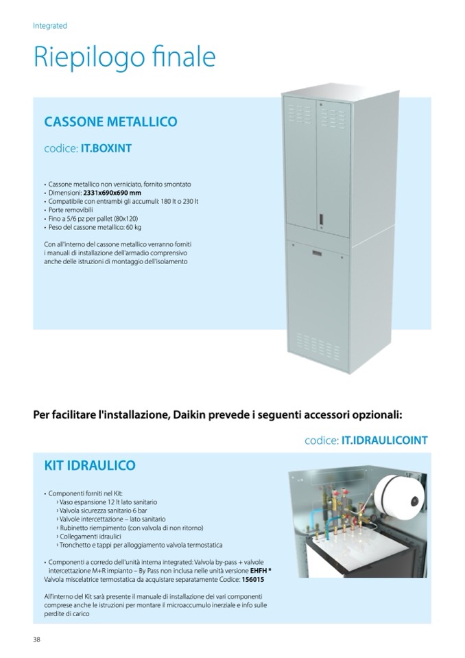 • Componenti a corredo dell’unità interna integrated: Valvola by-pass + valvole