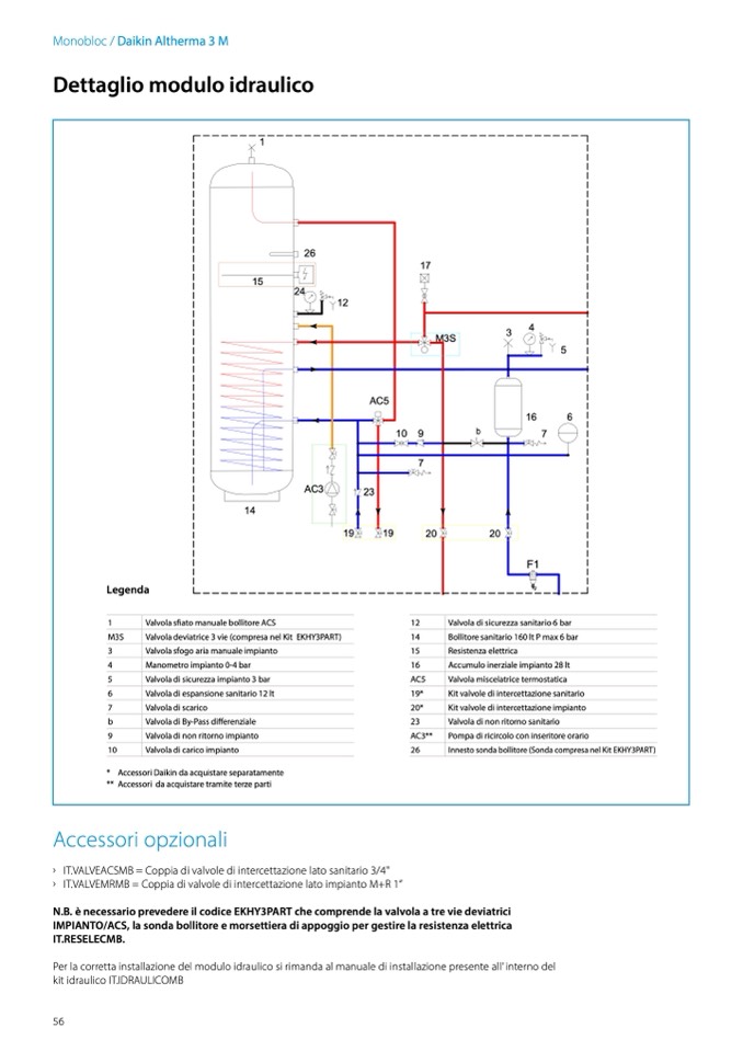 N.B. è necessario prevedere il codice EKHY3PART che comprende la valvola a tre vie deviatrici