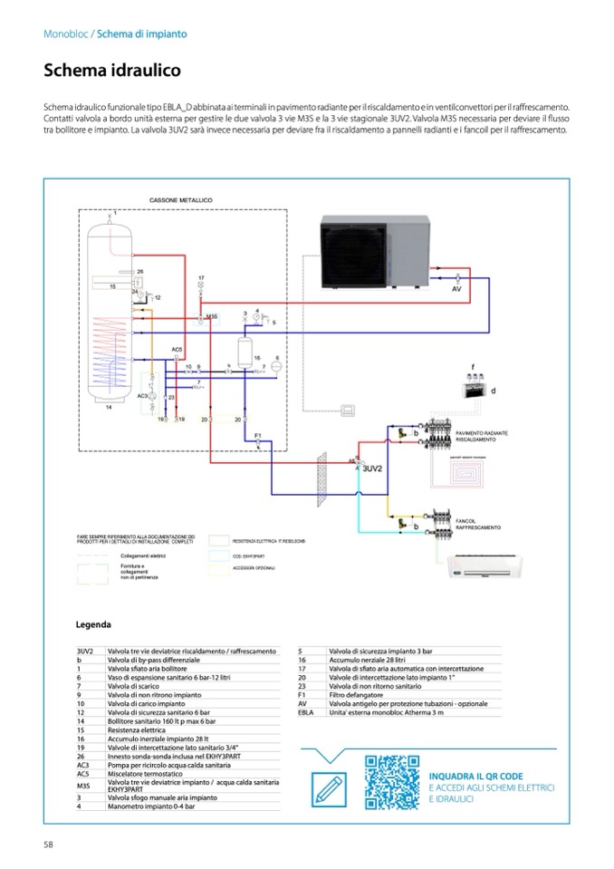 tra bollitore e impianto. La valvola 3UV2 sarà invece necessaria per deviare fra il riscaldamento a pannelli radianti e i fancoil per il raffrescamento.