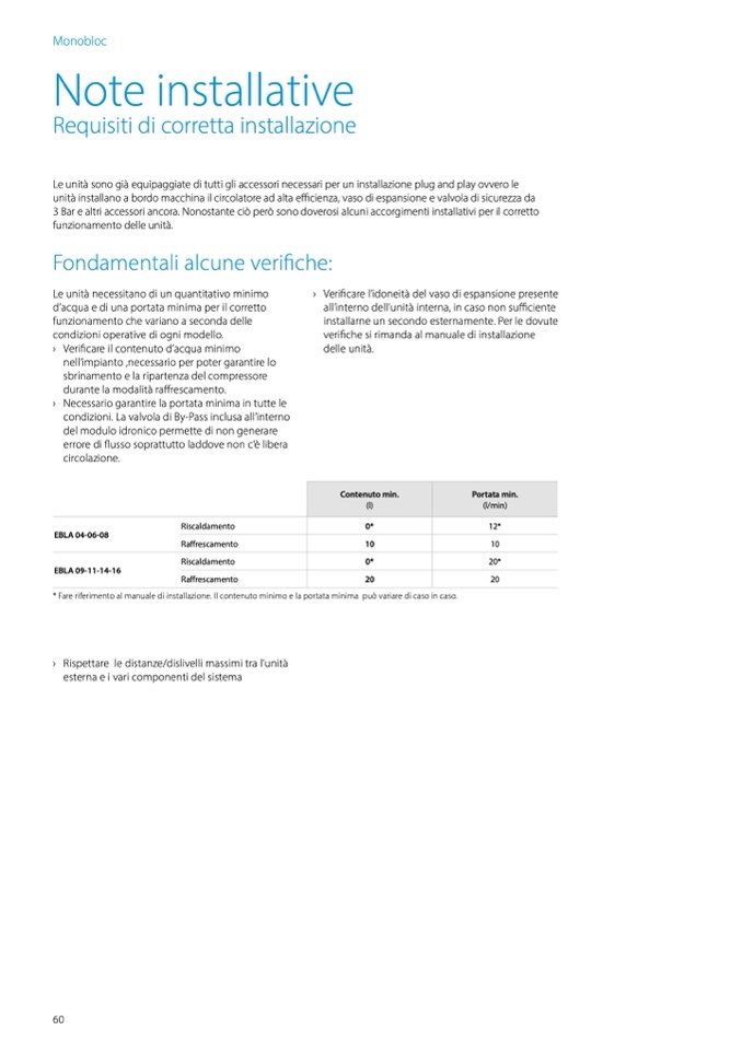 * Fare riferimento al manuale di installazione. Il contenuto minimo e la portata minima può variare di caso in caso.
