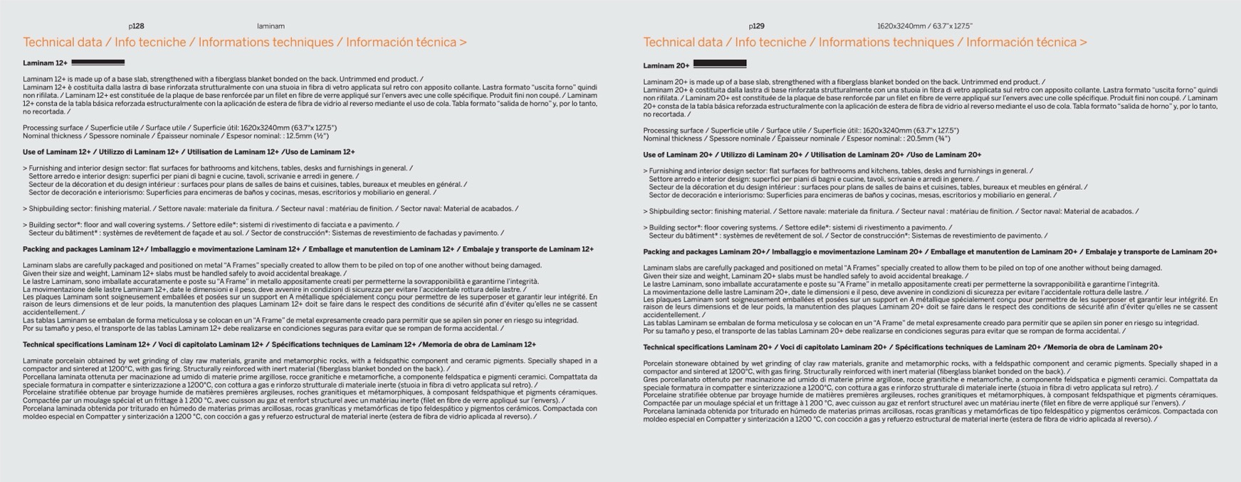Technical specifications Laminam 12+ / Voci di capitolato Laminam 12+ / Spécifications techniques de Laminam 12+ /Memoria de obra de Laminam 12+