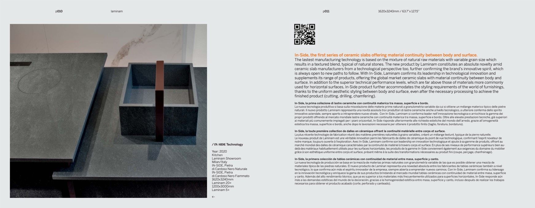 notre marque, toujours ouverte à l’exploration. Avec In-Side, Laminam confirme son leadership en innovation technologique et ajoute à sa gamme de produits, offrant au