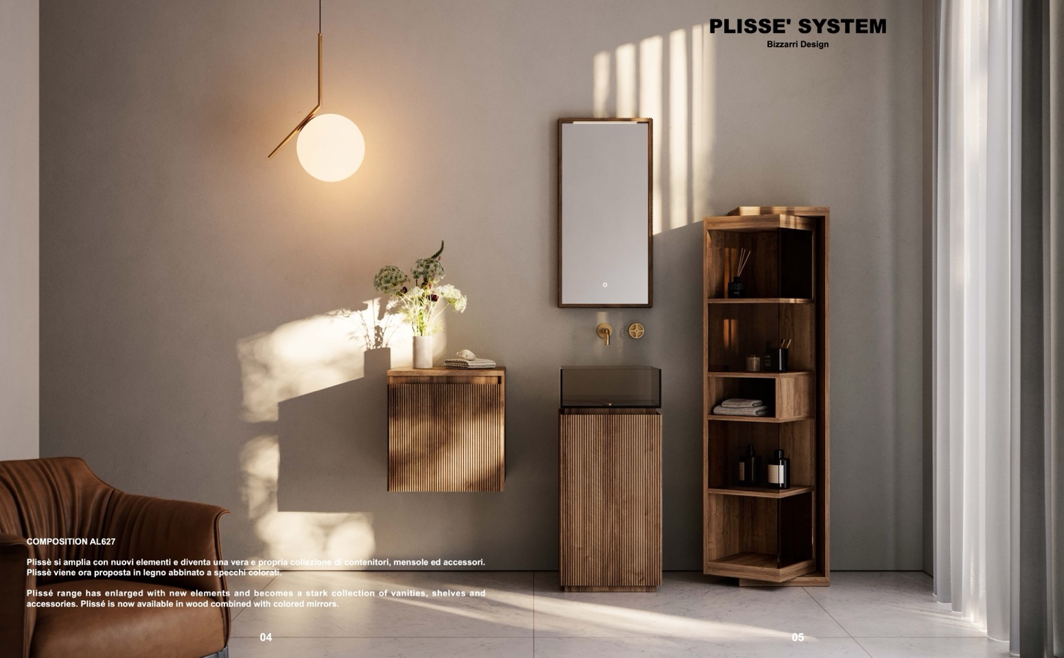 accessories. Plissé is now available in wood combined with colored mirrors.