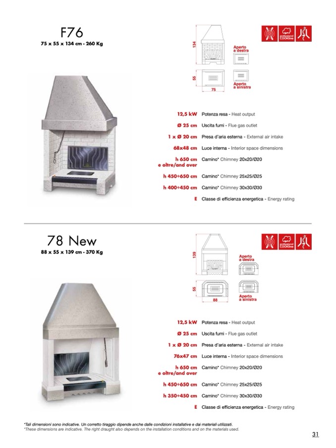 *These dimensions are indicative. The right draught also depends on the installation conditions and on the materials used.