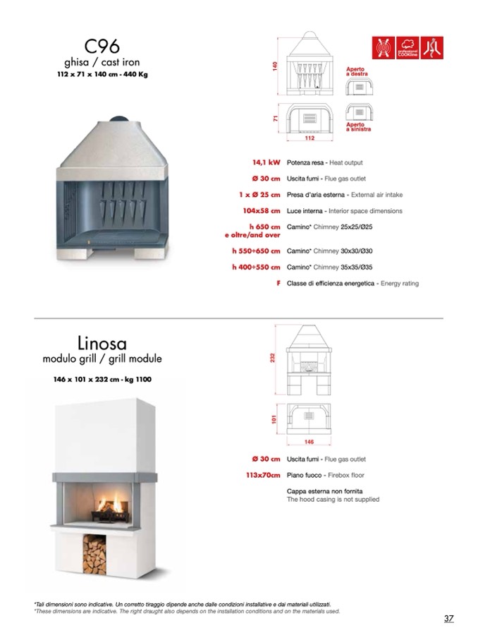 *These dimensions are indicative. The right draught also depends on the installation conditions and on the materials used.
