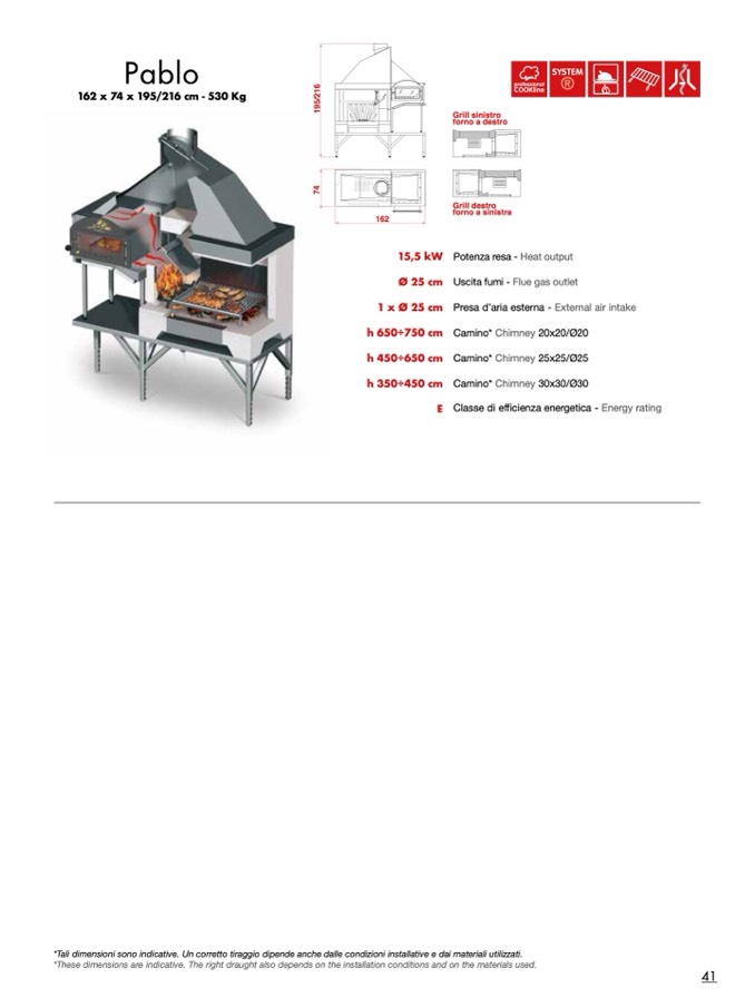 *These dimensions are indicative. The right draught also depends on the installation conditions and on the materials used.