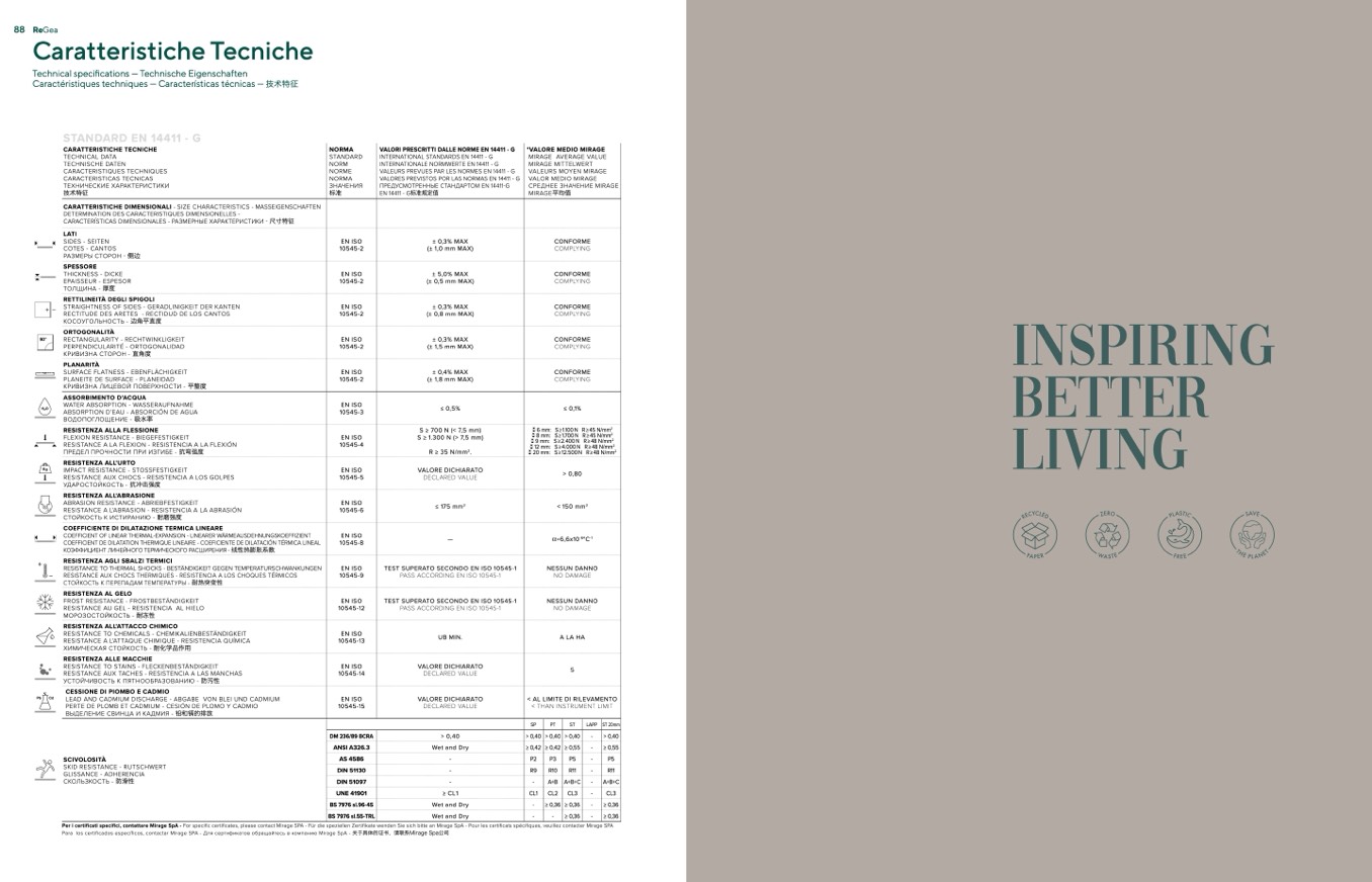 VALORI PRESCRITTI DALLE NORME EN 14411 - G