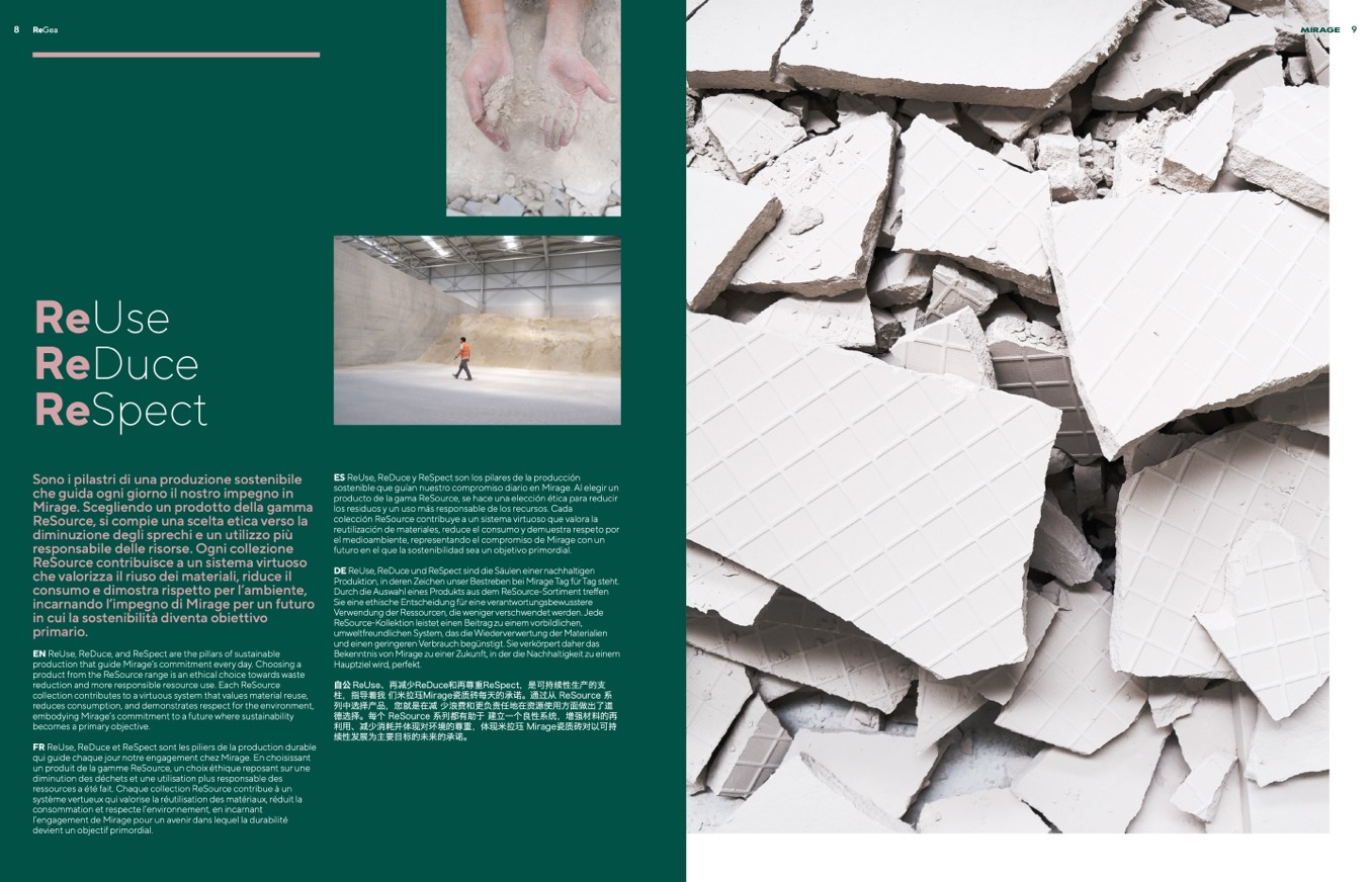 利用、减少消耗并体现对环境的尊重,体现米拉珏 Mirage瓷质砖对以可持