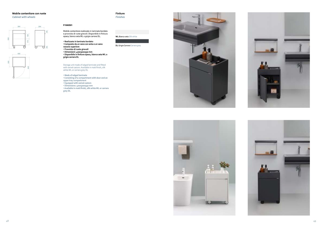with swivel castors. Available in matt finish, silk