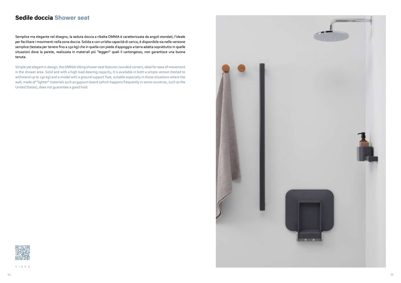 Semplice ma elegante nel disegno, la seduta doccia a ribalta OMNIA