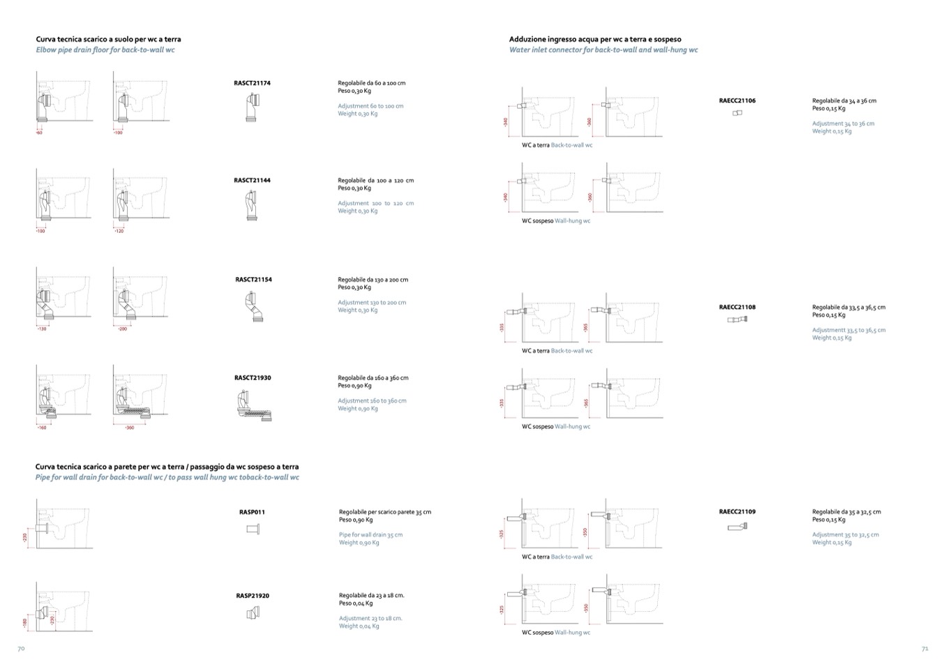 Curva tecnica scarico a parete per wc a terra / passaggio da wc sospeso a terra