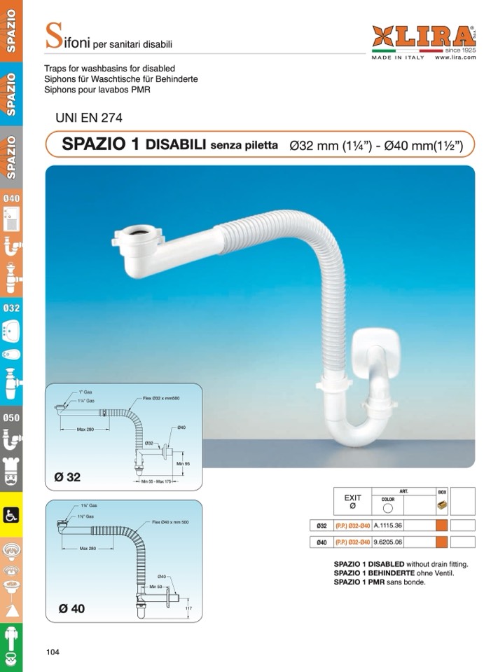 Ø32 mm (11⁄4”) - Ø40 mm(11⁄2”)