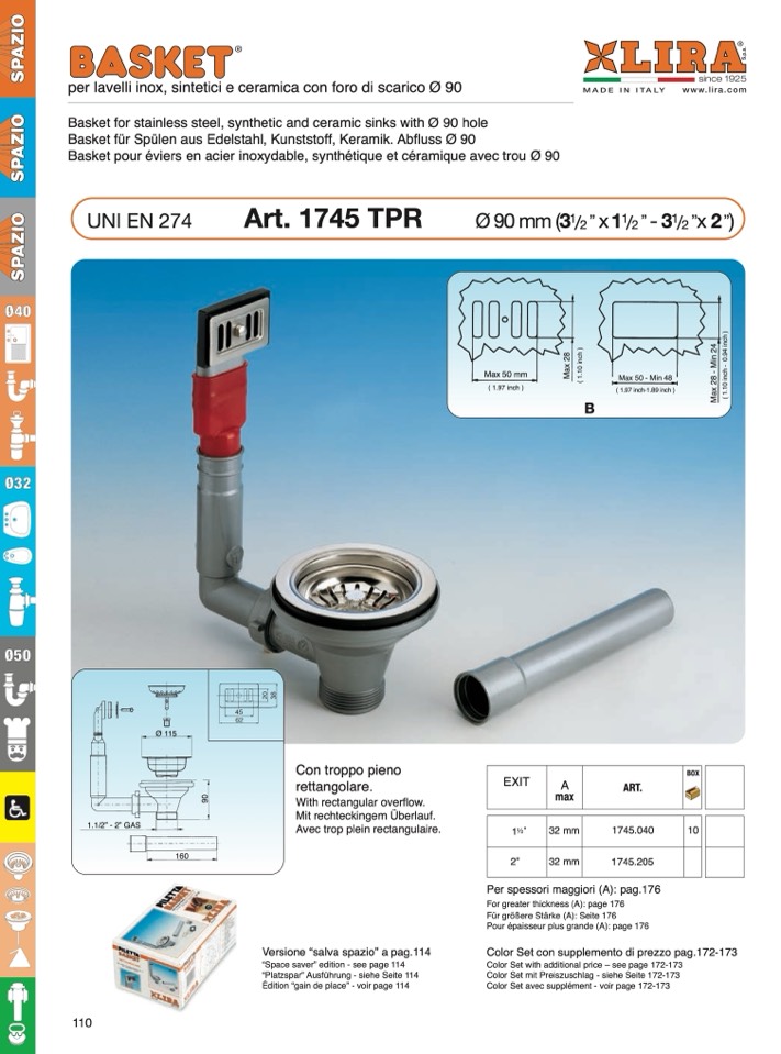 per lavelli inox, sintetici e ceramica con foro di scarico Ø 90