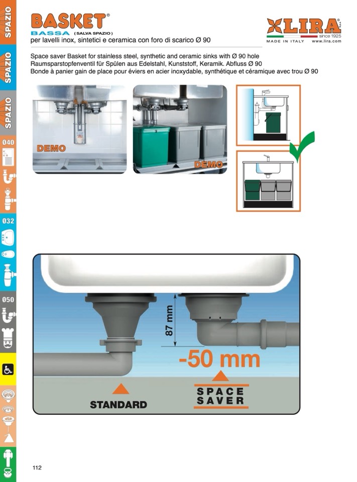 per lavelli inox, sintetici e ceramica con foro di scarico Ø 90
