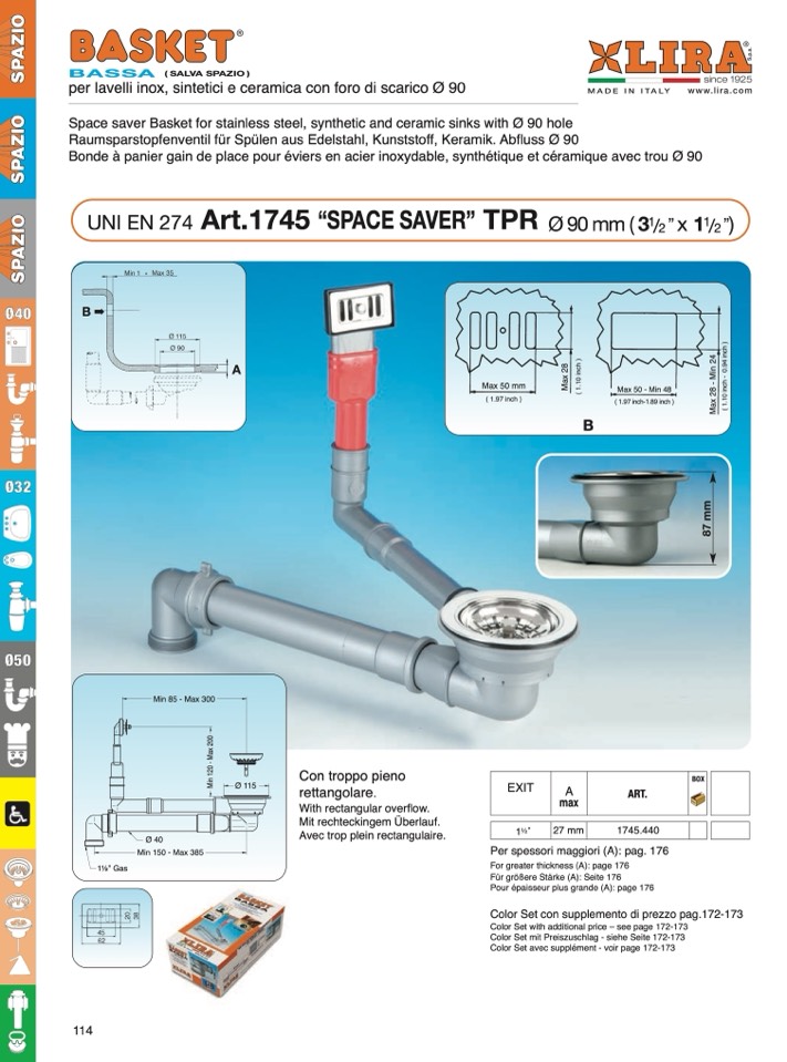 per lavelli inox, sintetici e ceramica con foro di scarico Ø 90