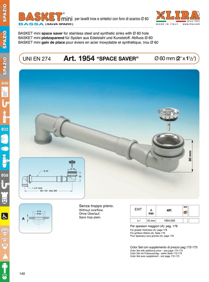 per lavelli inox e sintetici con foro di scarico Ø 60